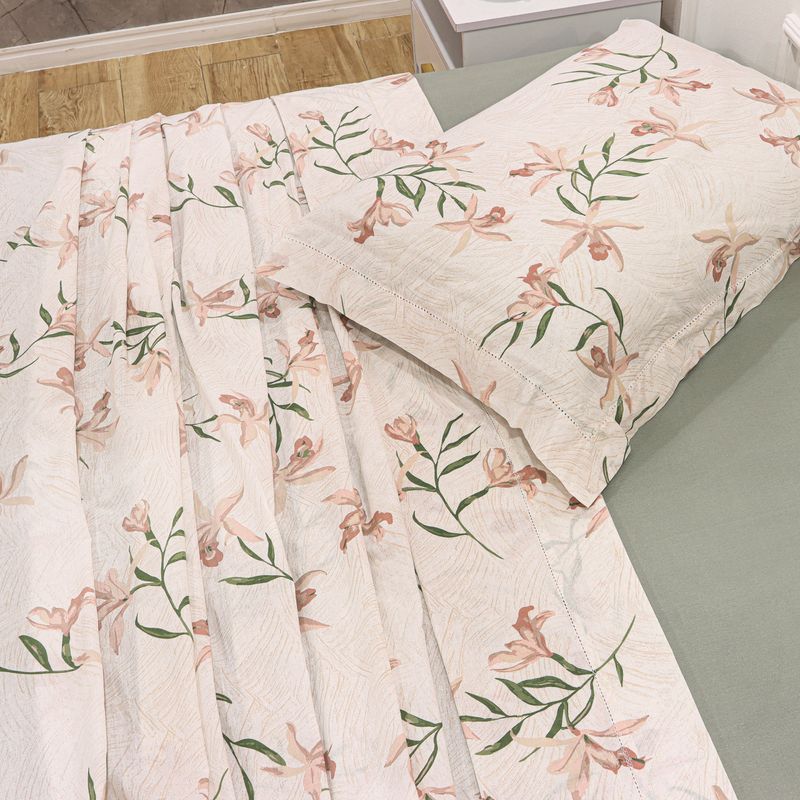 JOGO DE CAMA SOLTEIRO 180 FIOS PONTO AJOUR 100% ALGODÃO - GRACILENE ROSA