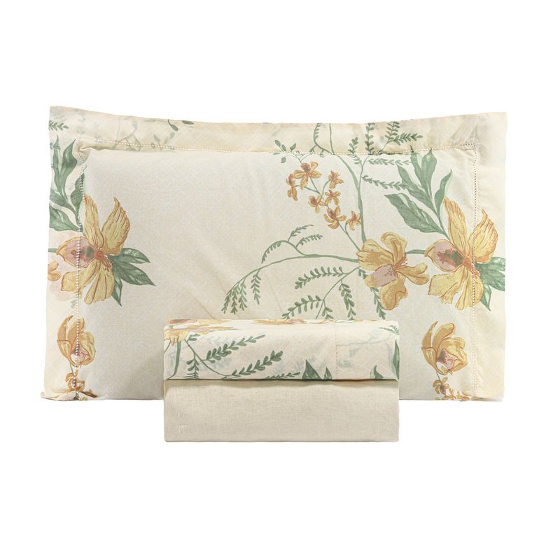 JOGO DE CAMA SOLTEIRO 180 FIOS PONTO AJOUR 100% ALGODÃO - NELMA BEGE