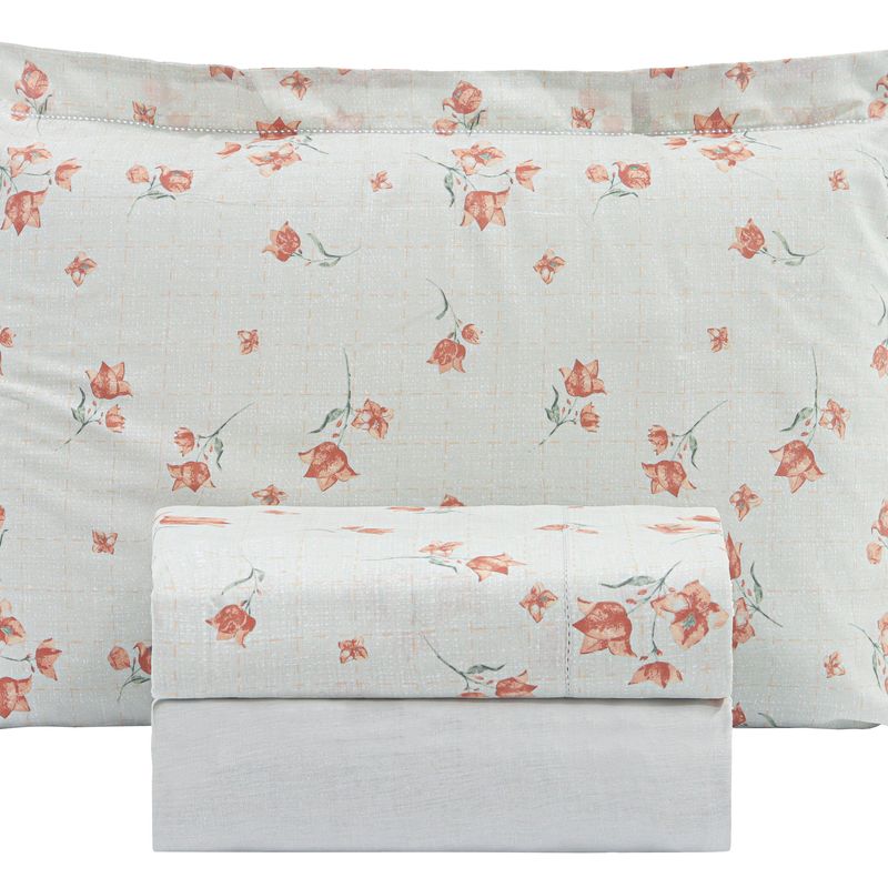 JOGO DE CAMA SOLTEIRO 180 FIOS PONTO AJOUR 100% ALGODÃO - VITÓRIA CINZA
