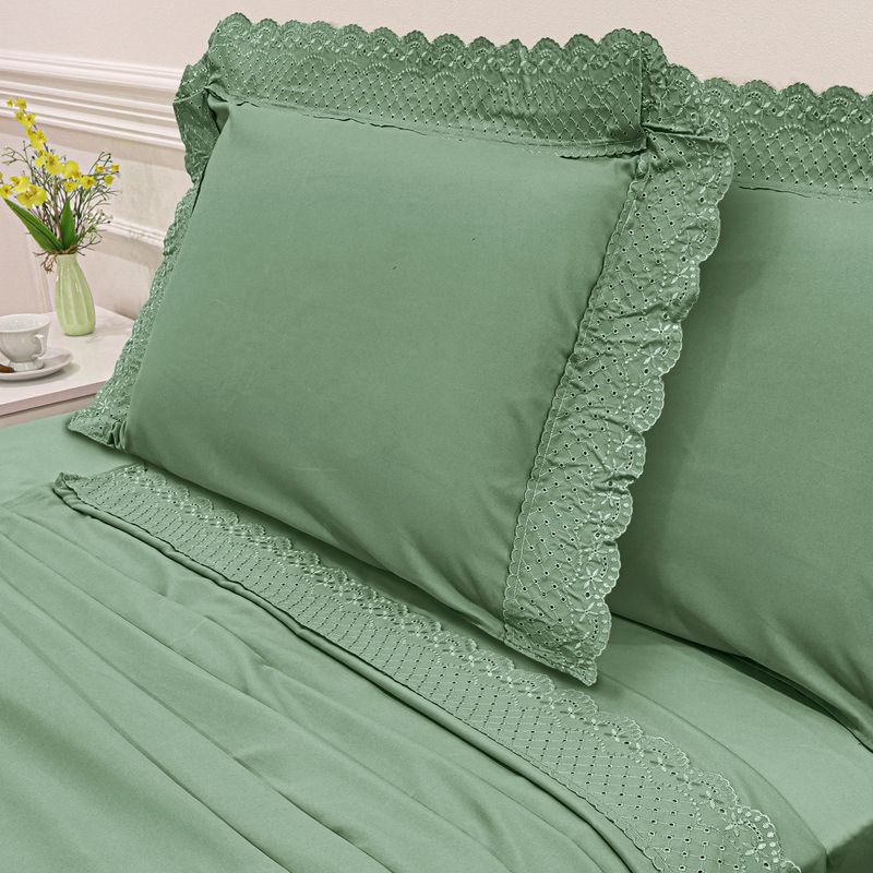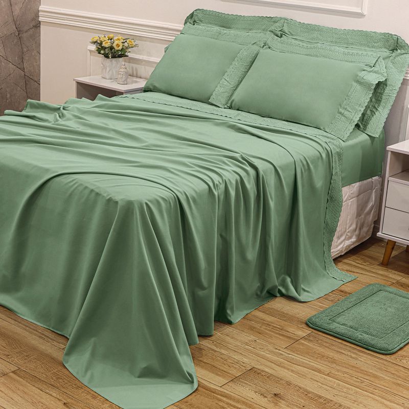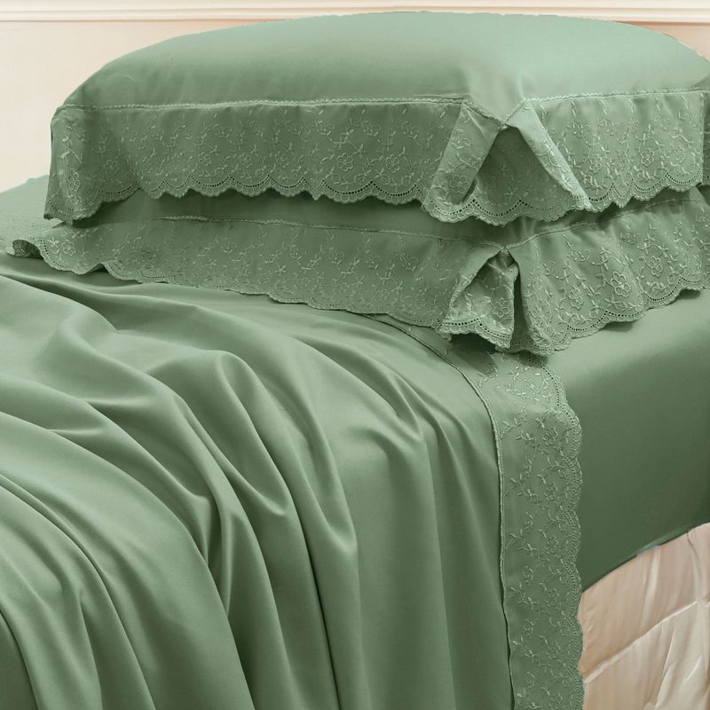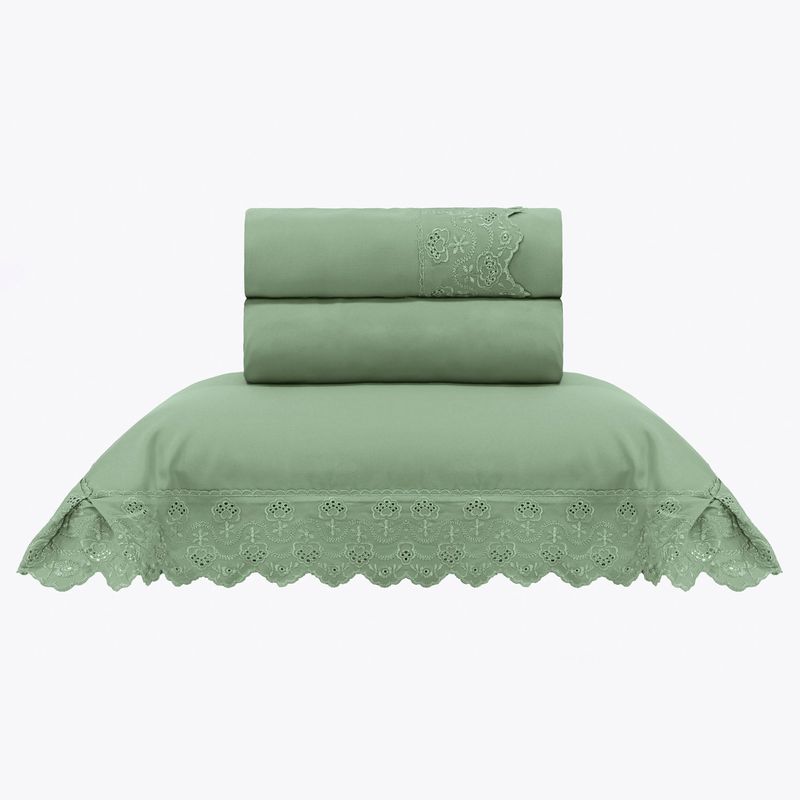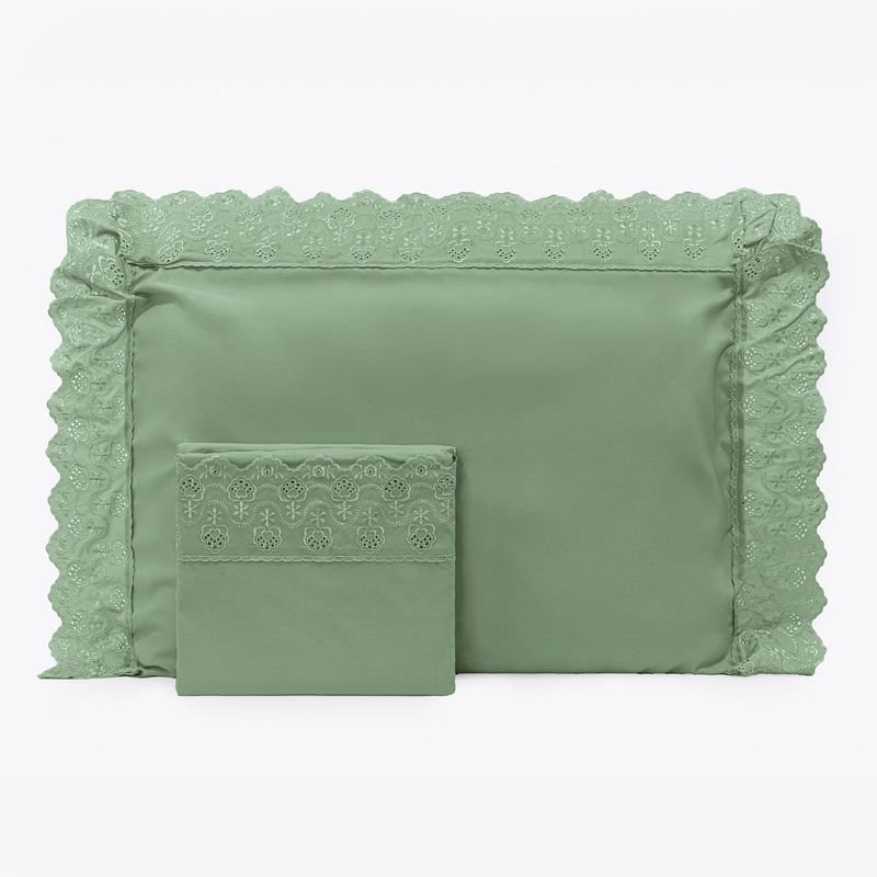 JOGO DE CAMA SOLTEIRO BORDADO INGLÊS - ARVORE VERDE ESCURO