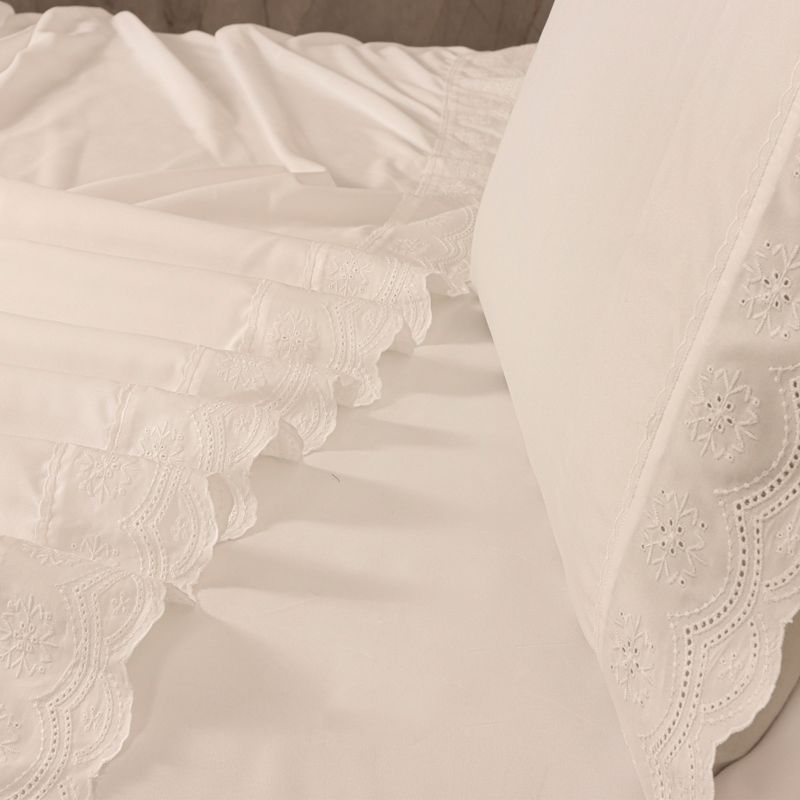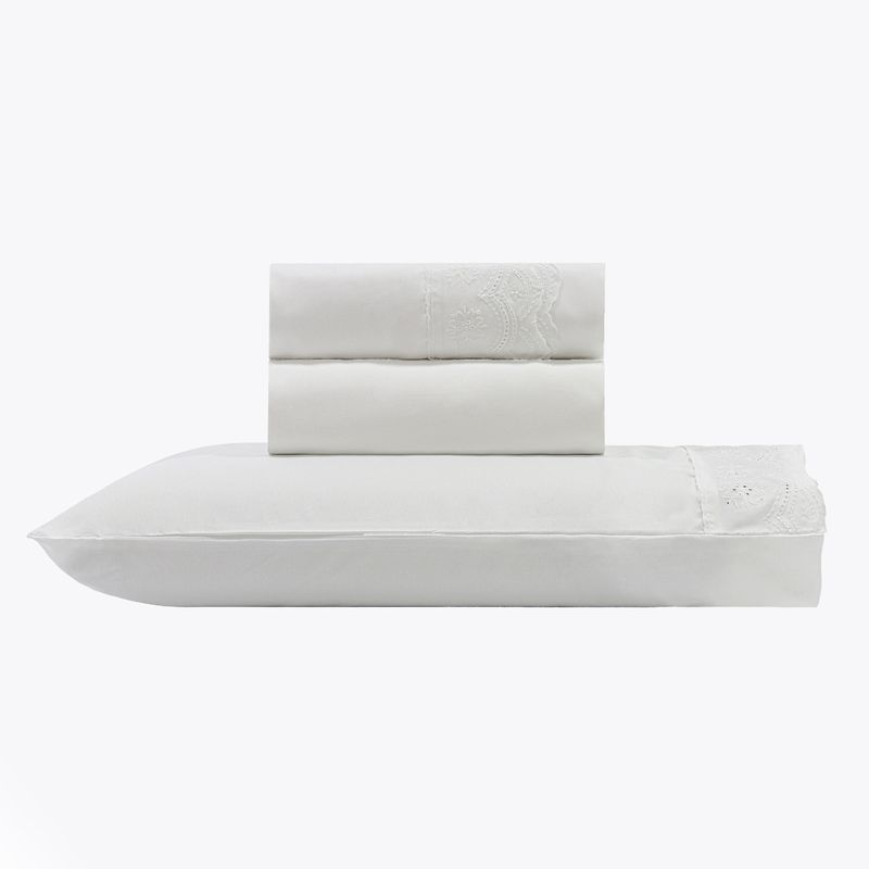 JOGO DE CAMA SOLTEIRO BORDADO INGLÊS - DÁLIA BRANCO