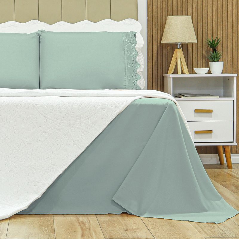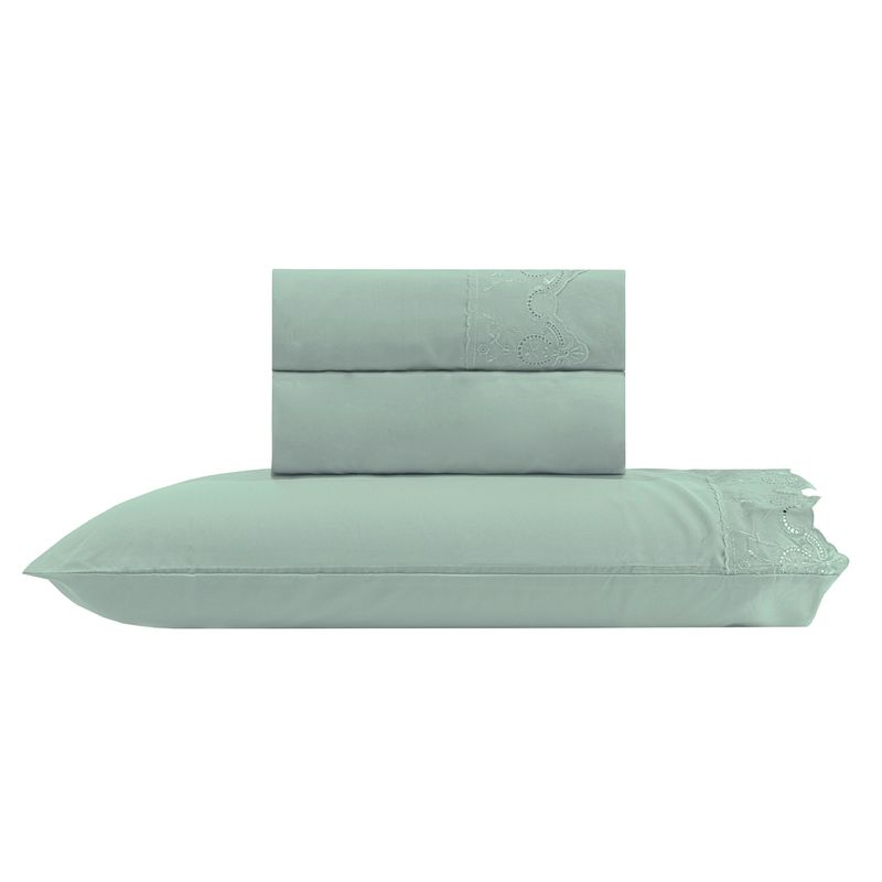 JOGO DE CAMA SOLTEIRO BORDADO INGLÊS - DÁLIA VERDE