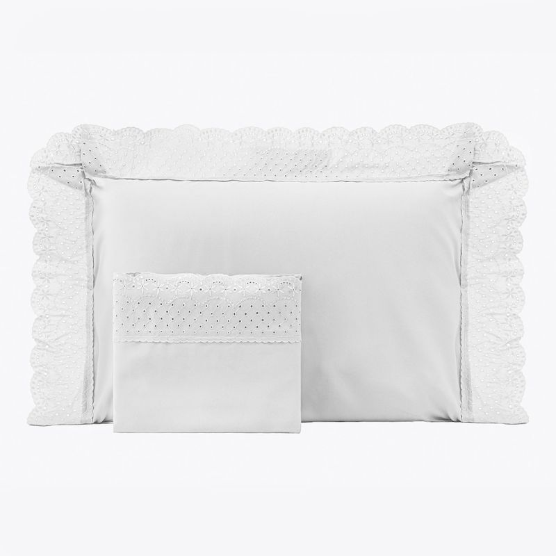 JOGO DE CAMA SOLTEIRO BORDADO INGLÊS - REDE BRANCO
