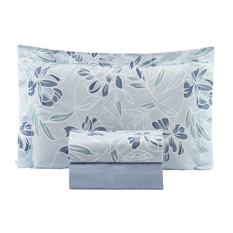 JOGO DE CAMA SOLTEIRO KING 180 FIOS PONTO AJOUR 100% ALGODÃO - GISELE AZUL