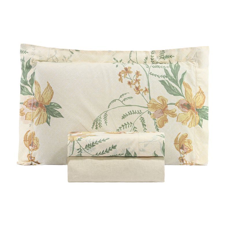JOGO DE CAMA SOLTEIRO KING 180 FIOS PONTO AJOUR 100% ALGODÃO - NELMA BEGE