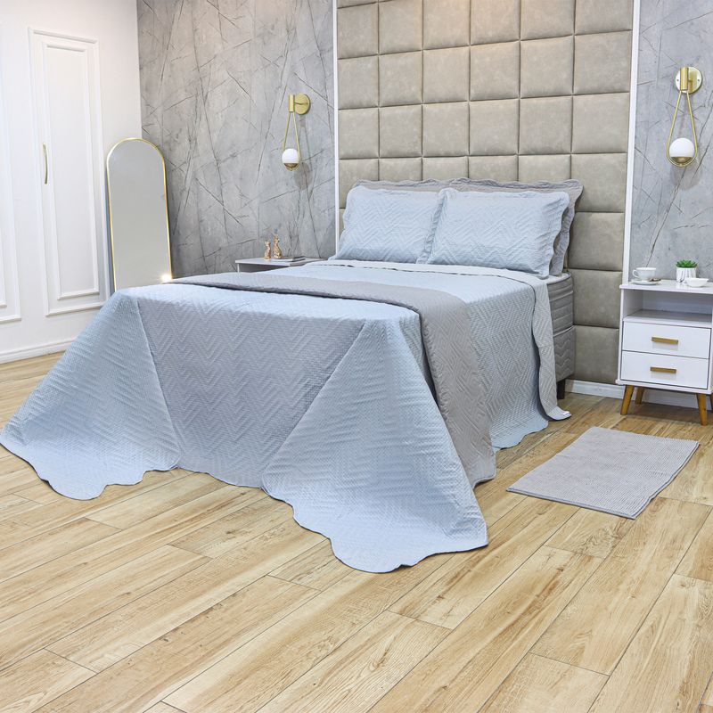 KIT CAMA CASAL ACETINADO ULTRASSONIC - MINI GAME CINZA