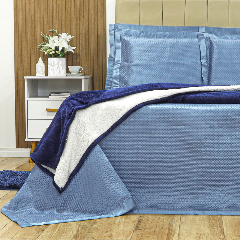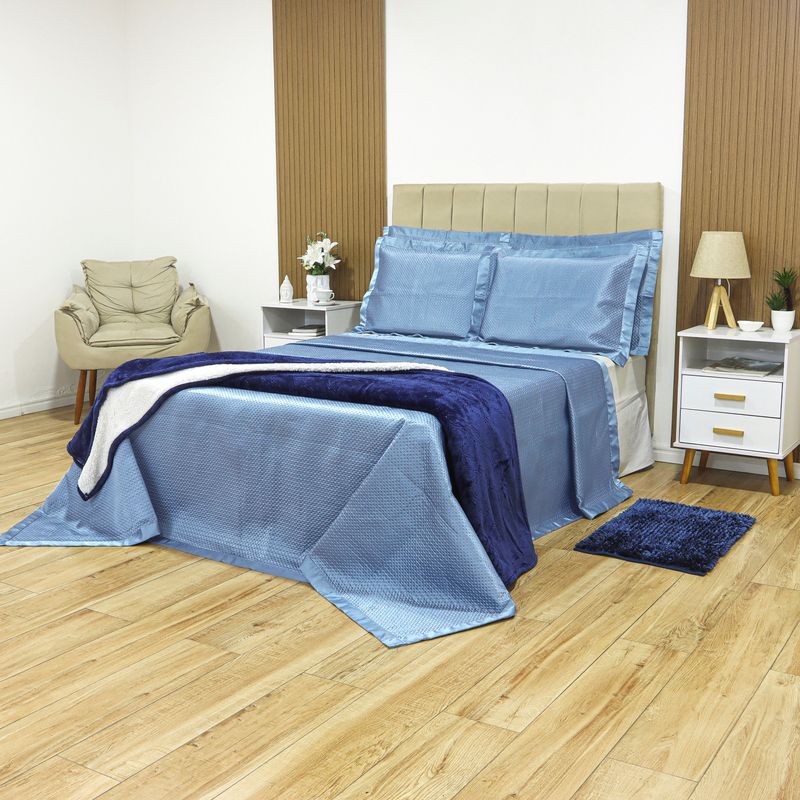 KIT CAMA CASAL ACETINADO ÔNIX - AZUL 164427