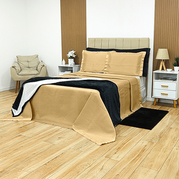 KIT CAMA CASAL ACETINADO ÔNIX - BEGE 141025