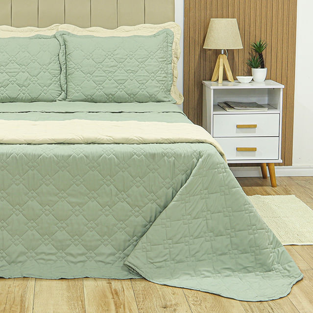 KIT CAMA CASAL MATELASSÊ - QUAD VERDE