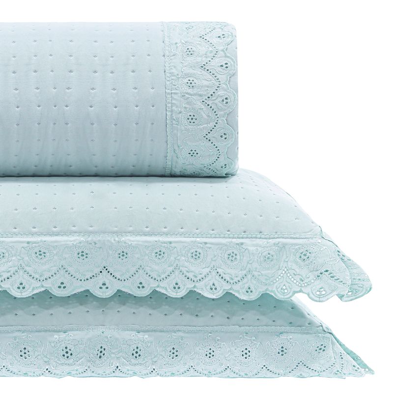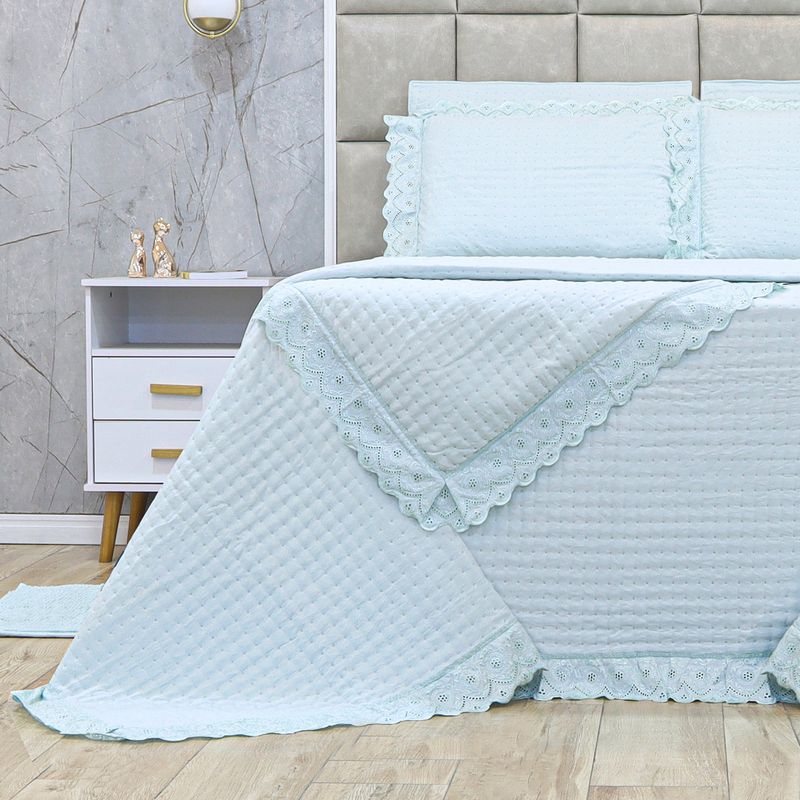 Kit Cama King Bordado Inglês - AZUL