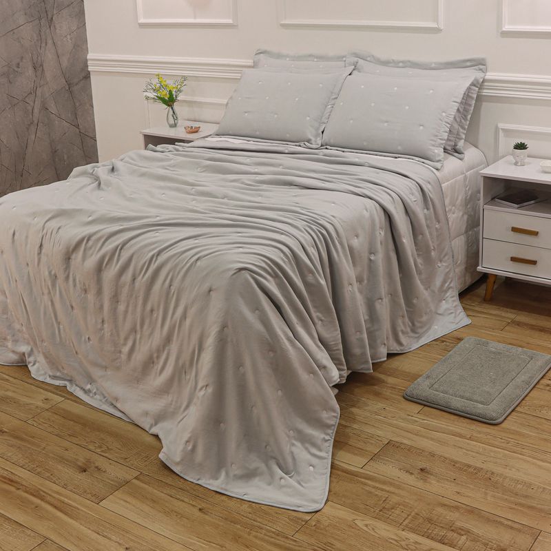 Kit Cama Solteiro Matelassê Dots - CINZA 12-4306