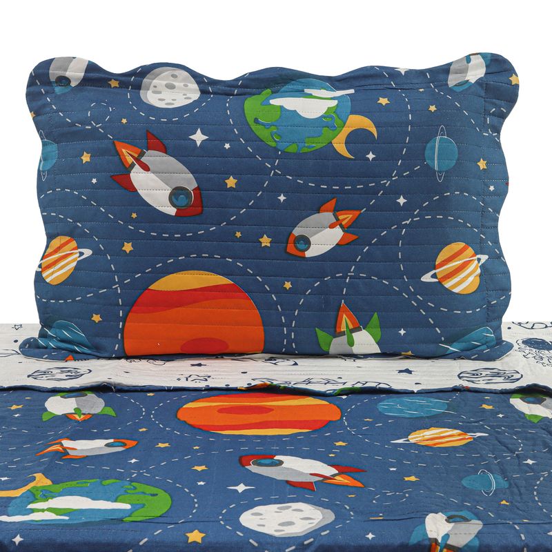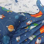 KIT CAMA SOLTEIRO ULTRA LISSE INFANTIL - FOGUETES AZUL MEDIO