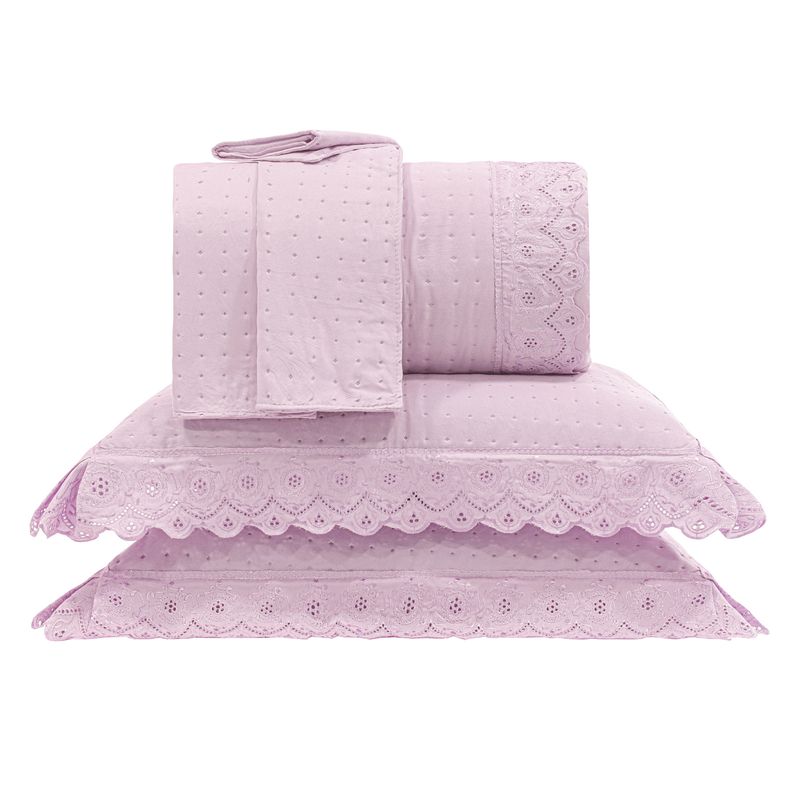 KIT ENXOVAL 5 PEÇAS BORDADO INGLÊS CASAL - BELLE NUIT ROSÊ
