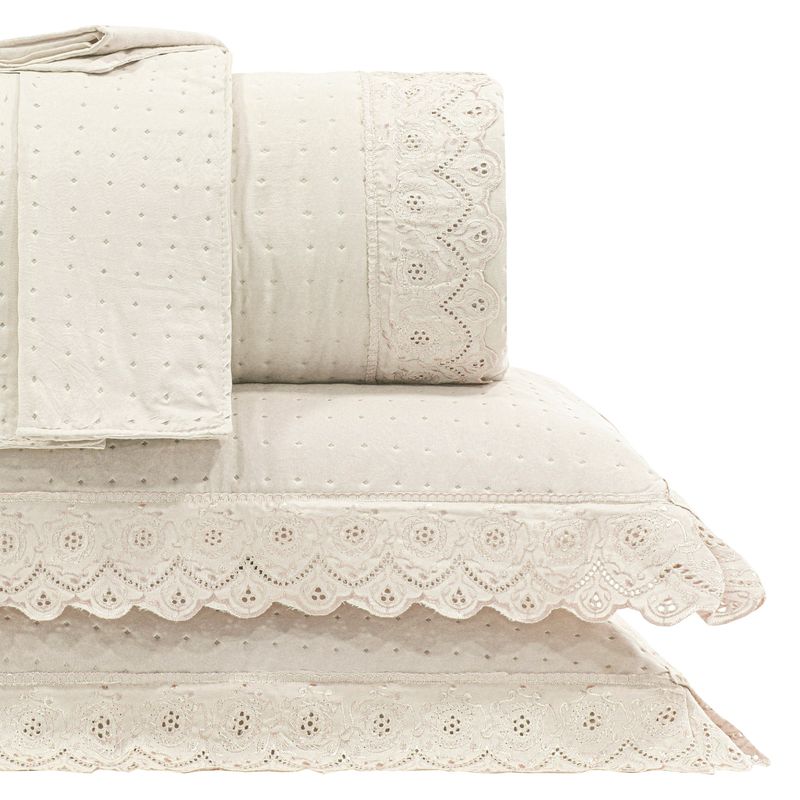 KIT ENXOVAL 5 PEÇAS BORD INGLÊS KING - BELLE NUIT BEGE