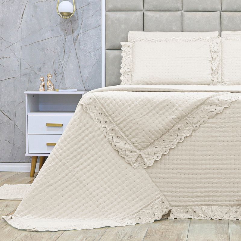 KIT ENXOVAL 5 PEÇAS BORDADO INGLÊS QUEEN - BELLE NUIT BEGE