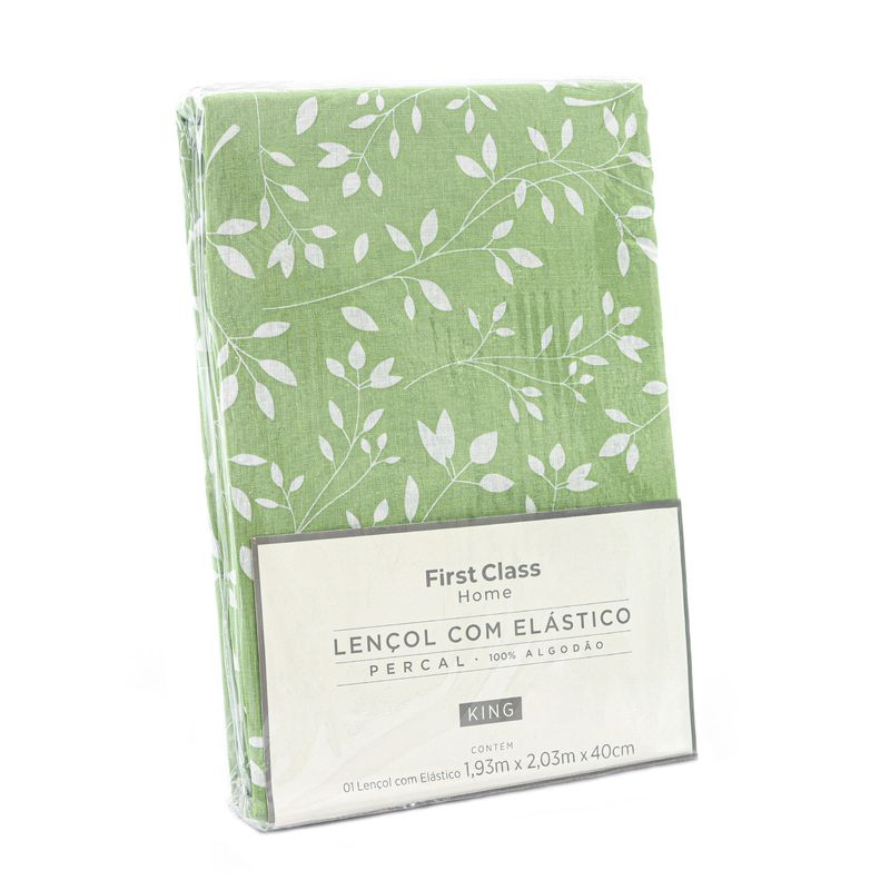 LENCOL C/ ELASTICO ESTAMPADO SOLTEIRO - FOLHAS VERDE