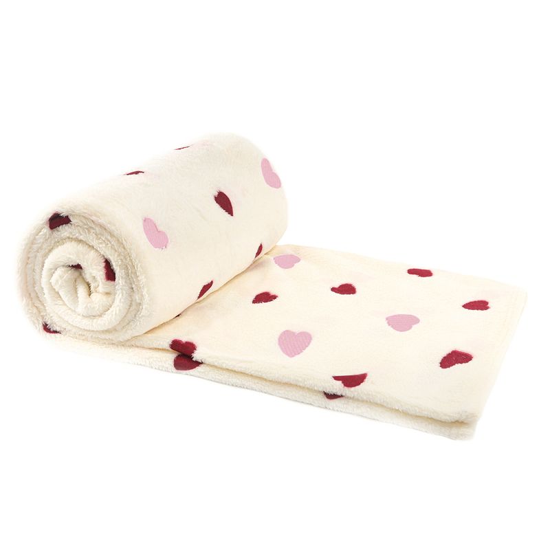 MANTA SOLTEIRO FLANNEL EFEITO BORDADA - CORAÇÃO DUO