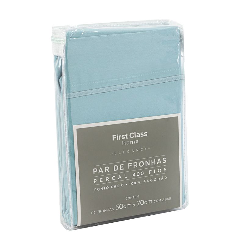 PAR DE FRONHA 400 FIOS PONTO CHEIO ELEGANCE - AZUL BEBE