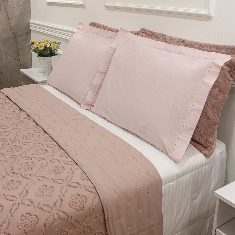 PAR DE FRONHAS 180 FIOS PONTO AJOUR COLOR CLASSIC - ROSA